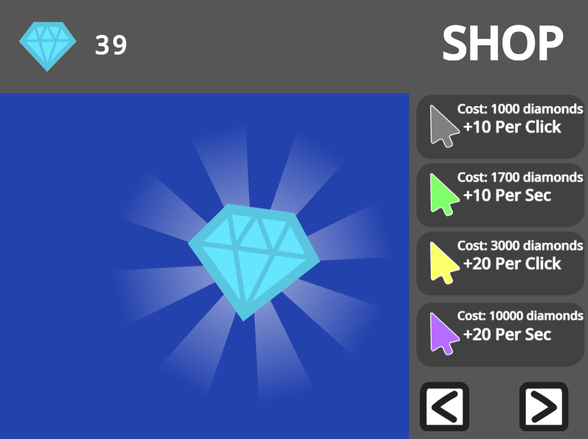 DIAMOND CLICKER is a clicker game where you have to click the diamonds and upgrade to get more!